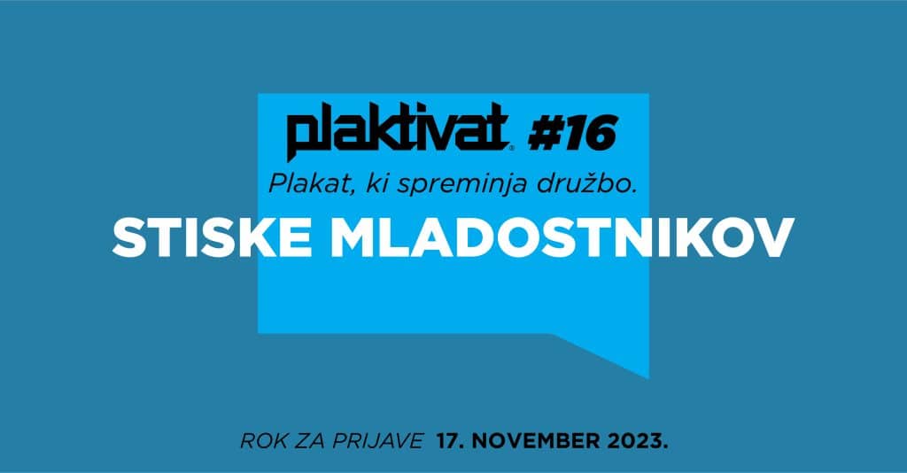 Ljubljana, 18. oktober 2023 – Odprte so prijave na 16. Plaktivat – mednarodni natečaj, ki kreativce spodbuja k odzivu na pereče tematike, javnost pa k razmisleku o njih. V tokratni ediciji TAM-TAM Inštitut v sodelovanju z Zvezo prijateljev mladine Slovenija in TOM telefonom izpostavlja stiske mladostnikov. Te so v zadnjih letih vse resnejše in zaskrbljujoče, spremlja pa jih nema tišina, saj podatki razkrivajo, da kar 40 % mladih svojih težav ne zaupa nikomur. V ospredju kreativnega izziva je tako spodbujanje k pogovoru, ki je morda resda najtežji, a izjemno pomemben prvi korak pri reševanju stiske.