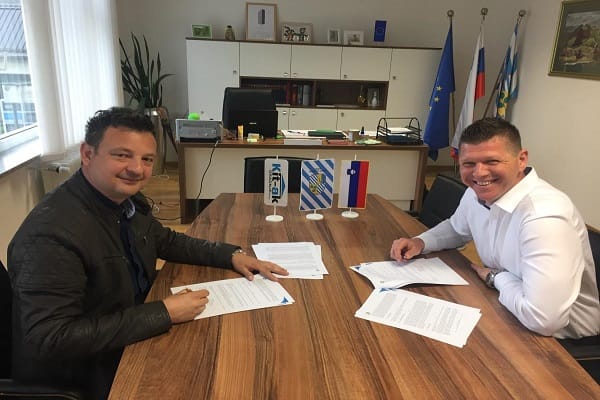Na fotografiji: Andrej Kitak, direktor podjetja KIT-AK gradnje, in župan Matija Čakš med podpisom pogodbe.