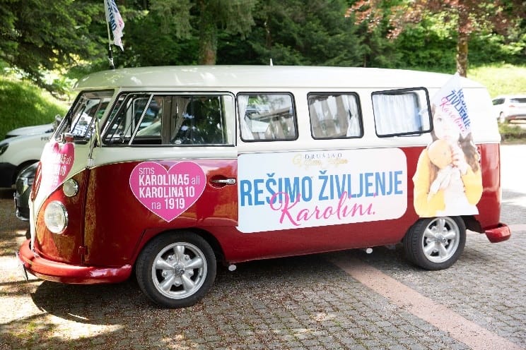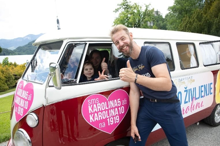 Ta vikend se je Karolina z družino tako podala na prav posebno dobrodelno turnejo po Sloveniji, v Društvu Viljem Julijan pa so ji ob tem priredili presenečenje, saj so ji omogočili posebno prevozno sredstvo, starodobni minibus VW T1, ki je za deklico še dodatno doživetje. Prva njena destinacija je bil naš naravni biser Bled, ki ga je sedaj videla in doživela prvič, ob tem pa je bila vsa nasmejana in navdušena. »Karolina je bila polna veselja in pričakovanja, ko je videla, s katerim vozilom se bo odpeljala na izlet. To je zanjo resnično prav posebno doživetje in neizmerno lepo jo je videti radostno ob vsej borbi z njeno kruto in neusmiljeno boleznijo, ki jo vsakodnevno prestaja,« pravita njena starša, »ne moreva si niti predstavljati, da čez nekaj časa najina deklica zaradi napredovanja bolezni vsega tega ne bi mogla več doživeti. Razvoj zdravljenja je resnično naša edina svetla točka, na katero se lahko opiramo in nam daje moč za naprej.«