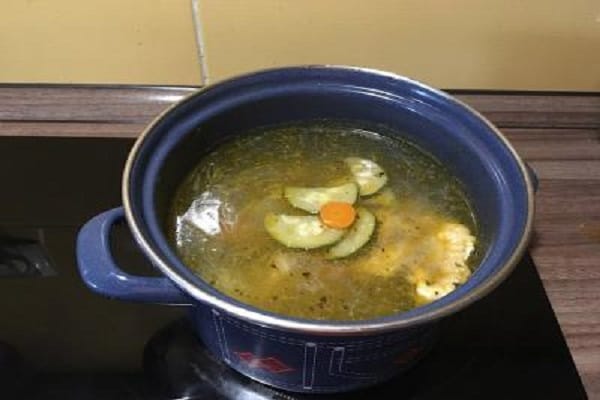 OPIS POSTOPKA: Najprej nasekljamo čebulo in narežemo zelenjavo. Čebulo na hitro prepražimo na olivnem olju, ko porumeni dodamo še ostalo zelenjavo in pražimo par minut. Nato vse skupaj zalijemo z vodo in dodamo meso in kosti. V lonec dodamo še vse začimbe in pustimo da juha zavre. Na zmernem ognju jo kuhamo še kakšno uro.