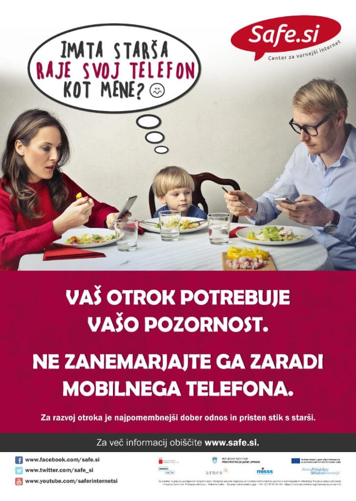 Na Safe.si skušajo na to problematiko opozoriti s kampanjo, ki so jo poimenovali »Imata starša raje svoj telefon kot mene?« V sklopu kampanje bodo slovenskim pediatrom, vrtcem in drugim, ki bodo to želeli, razdelili plakate, s katerimi skušajo starše spodbuditi k premisleku o pretirani uporabi mobilnih telefonov. Prav tako pa bo plakat v februarju, mesecu varne rabe interneta, visel na izbranih plakatnih mestih v večjih slovenskih mestih.