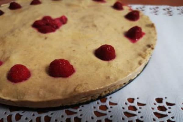 OPIS POSTOPKA: V kozici kuhamo ovsene kosmiče v mleku. Približno 5 minut oz. do zgoščene mase. Ta čas v blender narežemo banano in ostale sestavine. Ter zblendamo, da dobimo lepo kremasto strukturo. Ko imamo ovsene kosmiče kuhane jih damo v model za torte(26cm), dodamo žlici medu in zmešamo. Ko se testo ohladi pa dodamo kremasto sadno strukturo. Na koncu okrasimo po svoji želji in okusu.