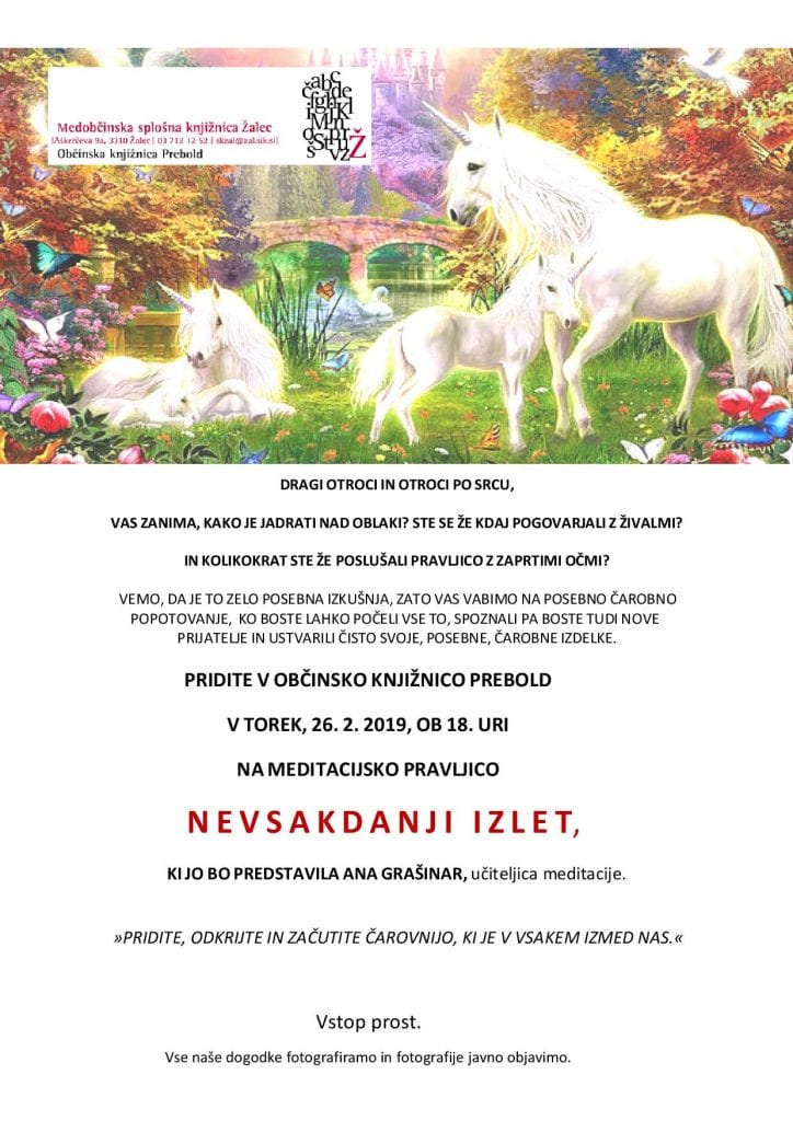 Vabljeni na meditacijsko pravljico Nevsakdanji izlet z Ano Grašinar v torek, 26. 2. ob 18.00 v Knjižnico Prebold, Savinjska regija.