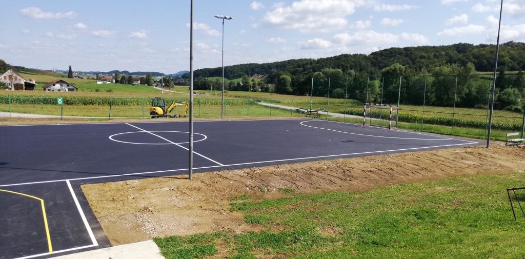 Obnovljeni sta površina za mali nogomet in večnamenska asfaltirana površina (za ulično košarko in druge športne vsebine), saj dosedanja asfaltna površina ni imela ustrezno utrjene podlage. Športna površina je imela ustrezno opremo (gol, koš) in ograjo, a je bilo treba koš vgraditi na drugo lokacijo.