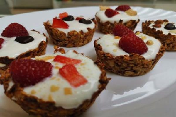 Ovsene košarice s sadjem in grškim jogurtom