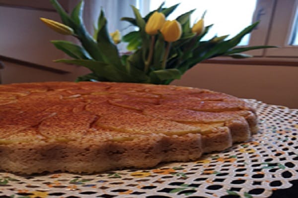 Ko se kasneje pekač ohladi, se lotimo obračanja pite. Bodi zelo previden! 🙂 Pito po želji okrasimo s cimetom in kokosovim sladkorjem.