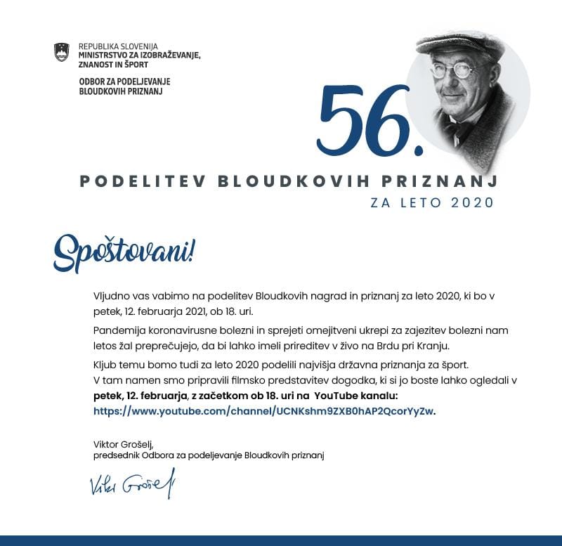 Kljub temu bomo tudi za leto 2020 podelili najvišja državna priznanja za šport. V tam namen smo pripravili filmsko predstavitev dogodka, ki si jo www.youtube.com/channel/UCNKshm9ZXB0hAP2QcorYyZw.