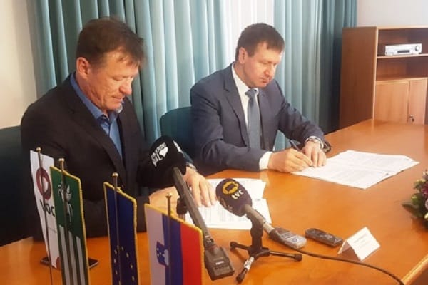 Podpis pogodb:Roman Moškotevc, direktor VOC Celje (levo) in mag. Branko Kidrič, župan Občine Rogaška Slatina