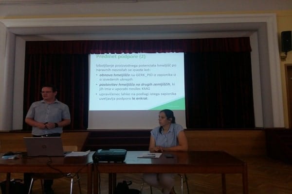 Agencija za kmetijske trge in razvoj podeželja je danes v Petrovčah vlagateljem in vnašalcem vlog predstavila javni razpis za podukrep 4.1 – Podpora za naložbe v kmetijska gospodarstva, ki je namenjen obnovi proizvodnega potenciala hmeljišč po naravni nesreči.