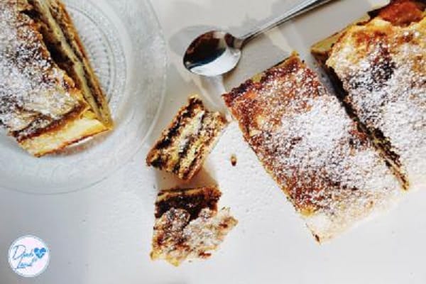 Predlog: nadeve lahko premažete samo po sredini (1/3), preložite desno stran testa čez nadeve. Nato ponovite postopek in spet naložite vse nadeve. Pokrijete s preostalo tretjino testa. Testo za sijaj premažete z umešanimi beljaki.