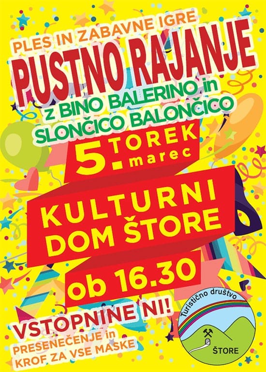 Torek, 5. marec 2019, ob 16.30. Kulturni dom Štore.