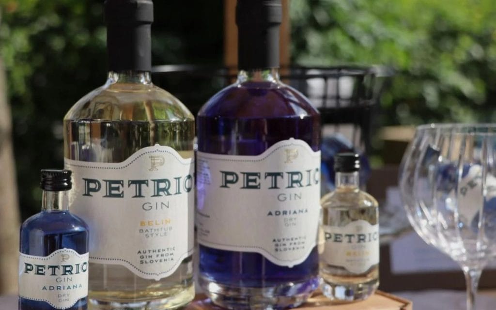 Med gini, ki izstopajo v svoji barvi, je zagotovo tudi slovenski gin mikrodestilarne Petriot, Adriana. Ta je dobil navdih iz Slovenskega Primorja, zato je poleg tipične primorske botanike tekom destilacije in z dodajanjem cveta grahove metuljčice po destilaciji (butterfly pea) zanj značilna tudi čudovita modra barva, zato ta gin spada v kategorijo “Dry gin”. Da pa je učinek še večji, se Adriana ob dodatku tonika čarobno spremni v vijolično barvo.