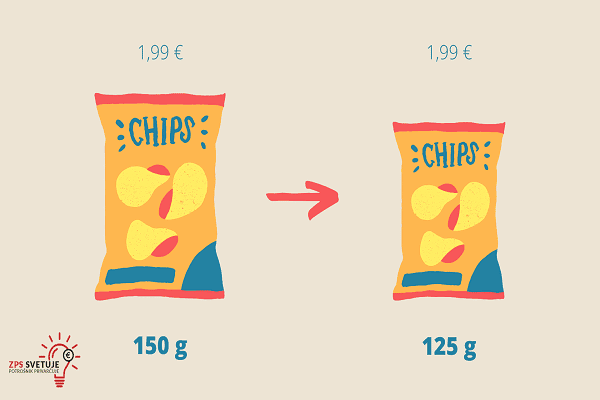 V času inflacije se proizvajalci vse pogosteje poslužujejo prakse, pri kateri zmanjšajo količino svojega izdelka, cena in embalaža le-tega pa ostaneta tako rekoč nespremenjeni. Tovrstna praksa sicer ni prepovedana in ni v nasprotju z veljavno zakonodajo.