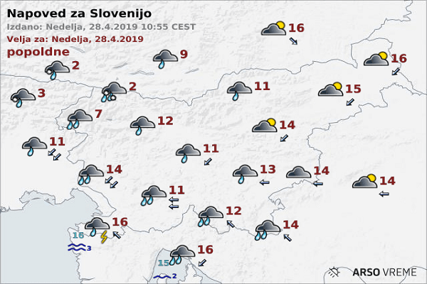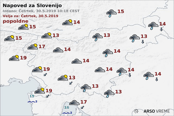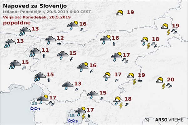 Vremenska napoved za Slovenijo, 3.6.2019