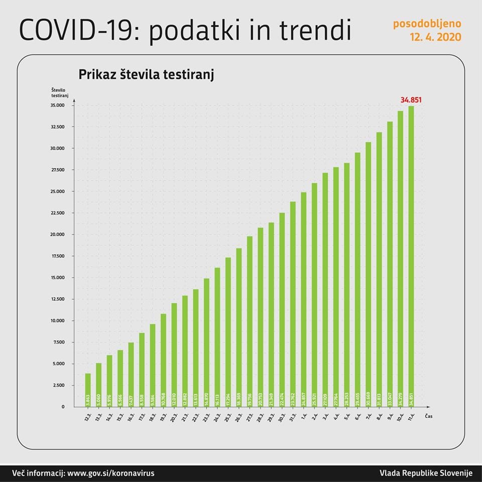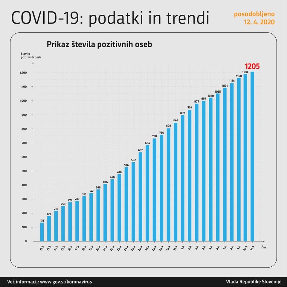 Trend obolelosti s koronavirusom v Sloveniji na dan 11. 4. 2020 (00:00 – 24:00):