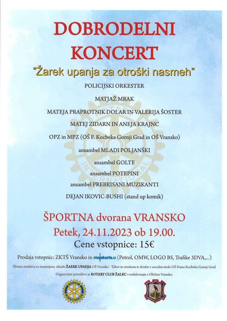 Občine Savinjske regijeSlovenija VABILO NA DOBRODELNI KONCERT “ŽAREK UPANJA ZA OTROŠKI NASMEH” 13/11/2023 urednik obcina tabor, savinjska regija VABILO NA DOBRODELNI KONCERT “ŽAREK UPANJA ZA OTROŠKI NASMEH” Športna dvorana Vransko, petek, 24. november, ob 19. uri. vir: obcina-tabor.si Zahvaljujemo se Vam ker nas berete :), ne pozabite vščekati našo FB stran